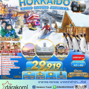 ทัวร์ญี่ปุ่น – มหัศจรรย์…HOKKAIDO โซอุนเคียว อาซาฮิกาว่า ล่องเรือตัดน้ำแข็ง 6วัน4คืน(XJ)เดือนมกราคม – มีนาคม 2569