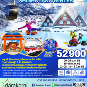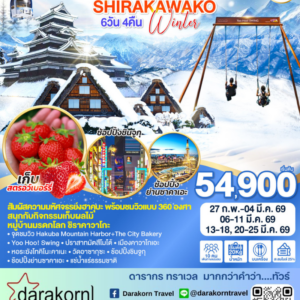 ทัวร์ญี่ปุ่น – HAKUBA IWATAKE SHIRAKAWAGO WINTER 6วัน4คืน(TG)เดือนกุมภาพันธ์ – มีนาคม 2569