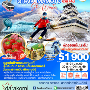 ทัวร์ญี่ปุ่น – KYUSHU SAGA OITA KUMAMOTO SKI WINTER 6วัน4คืน(TG)เดือนมกราคม – กุมภาพันธ์ 2569