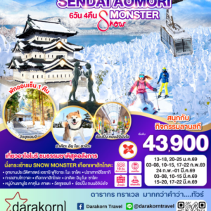 ทัวร์ญี่ปุ่น – เซนได ยามากาตะ ซาโอะ ไอซ์มอนสเตอร์ 5วัน3คืน(HB)เดือนมกราคม – มีนาคม 2569