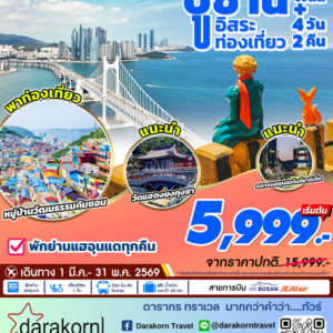 ทัวร์เกาหลี -Busan Plus 4วัน2คืน(7C,BX)เดือนมีนาคม – พฤษภาคม 2569
