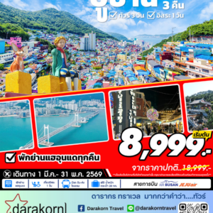 ทัวร์เกาหลี – Busan Gold Package 4วัน2คืน(7C,BX)เดือนมีนาคม – พฤษภาคม 2569