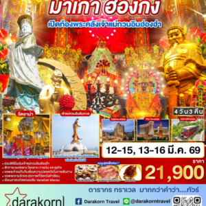 ทัวร์ฮ่องกง มาเก๊า – เส้นทางเศรษฐี เปิดดวงรับโชค เปิดท้องพระคลังเจ้าแม่กวนอิมฮ่องฮำ 4วัน3คืน(CX)เดือนมีนาคม 2569
