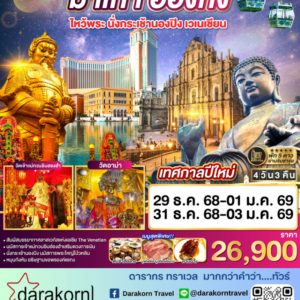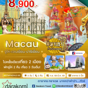 ทัวร์มาเก๊า – มาเก๊า-จูไห่-เวเนเชี่ยน-ปาริเชี่ยน 3วัน2คืน(NX)เดือนตุลาคม 2568 – มีนาคม 2569