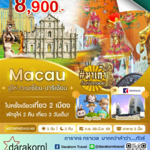 ทัวร์มาเก๊า – มาเก๊า-จูไห่-เวเนเชี่ยน-ปาริเชี่ยน 3วัน2คืน(NX)เดือนมกราคม – มีนาคม 2569