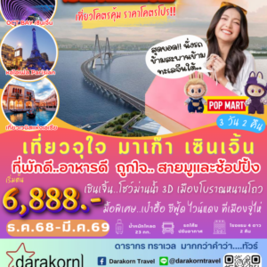 ทัวร์มาเก๊า – เที่ยวจุใจ มาเก๊า เซินเจิ้น 3วัน2คืน(NX)เดือนมกราคม – มีนาคม 2569
