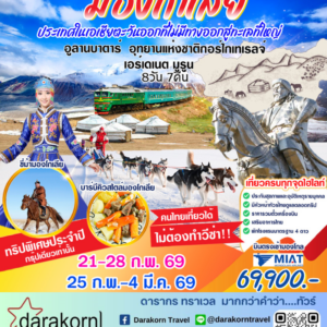 ทัวร์มองโกเลีย – perfect มองโกเลีย อูลานบาตาร์ อุทยานแห่งชาติกอร์ไกเทเรลจ์ เอร์เดเนต มูรูน 8วัน7คืน(MO)เดือนกุมภาพันธ์ 2569
