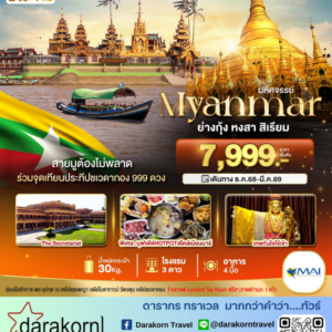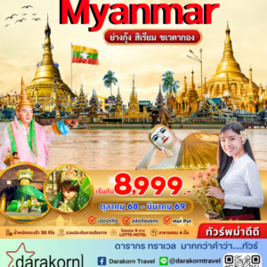 ทัวร์พม่า – มหัศจรรย์..เมียนมาร์ ย่างกุ้ง หงสา สิเรียม ร่วมจุดเทียนประทีปชเวดากอง 999 ดวง 2วัน1คืน(8M)เดือนธันวาคม 2568 – มีนาคม 2569