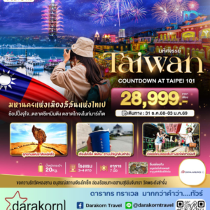 ทัวร์ไต้หวัน – มหัศจรรย์..TAIPEI COUNTDOWN ชมพลุข้ามปี (พักไทเป2คืน) 4วัน3คืน(SL)เดือนธันวาคม 2568
