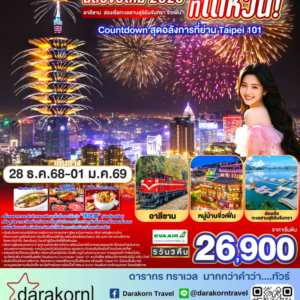 ทัวร์ไต้หวัน – ฉลองปีใหม่ 2026 ที่ไต้หวัน! Countdown สุดอลังการที่ย่าน Taipei 101 5วัน3คืน(BR)เดือนธันวาคม 2568