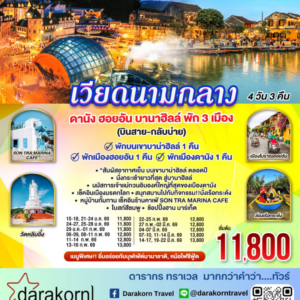 ทัวร์เวียดนาม – ดานัง ฮอยอัน บานาฮิลล์ พัก 3 เมือง 4วัน3คืน(VZ)เดือนมกราคม – มีนาคม 2569