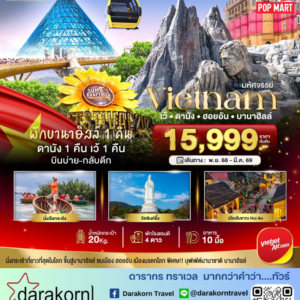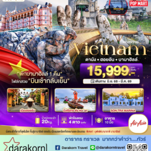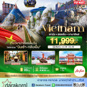 ทัวร์เวียดนาม – ดานัง ฮอยอัน เที่ยวบานาฮิลล์เต็มวัน 4วัน3คืน(VZ)เดือนตุลาคม – มีนาคม 2569