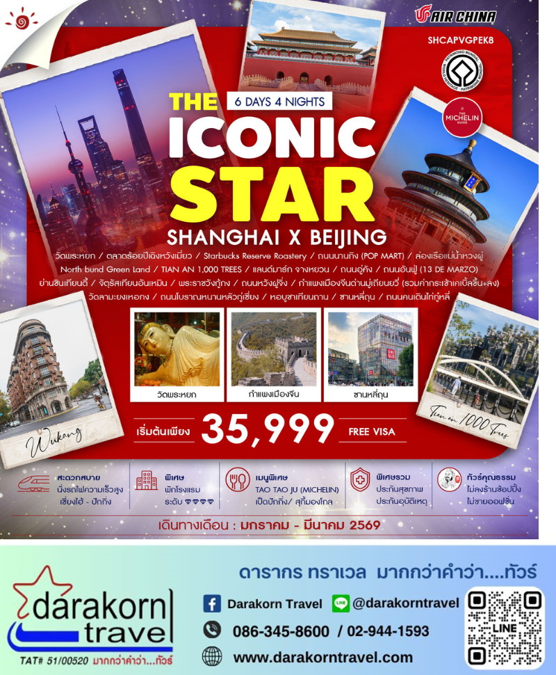 ทัวร์จีน - THE ICONIC STAR SHANGHAI X BEIJING 6วัน4คืน(CA)เดือนมกราคม - มีนาคม 2569