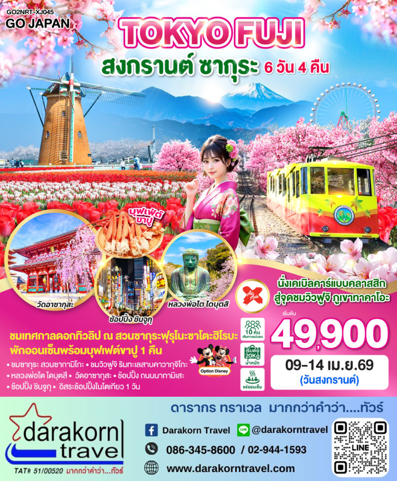 ทัวร์ญี่ปุ่น - TOKYO FUJI สงกรานต์ ซากุระ 6วัน4คืน(XJ)เดือนเมษายน 2569
