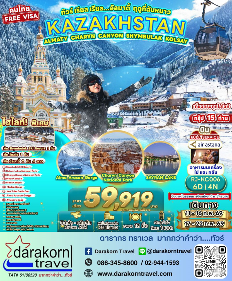 ทัวร์คาซัคสถาน - ทัวร์เรียล เรียล...อัลมาตี้ ฤดูที่ฉันหนาว 6วัน4คืน(KC)เดือนกุมภาพันธ์ 2569
