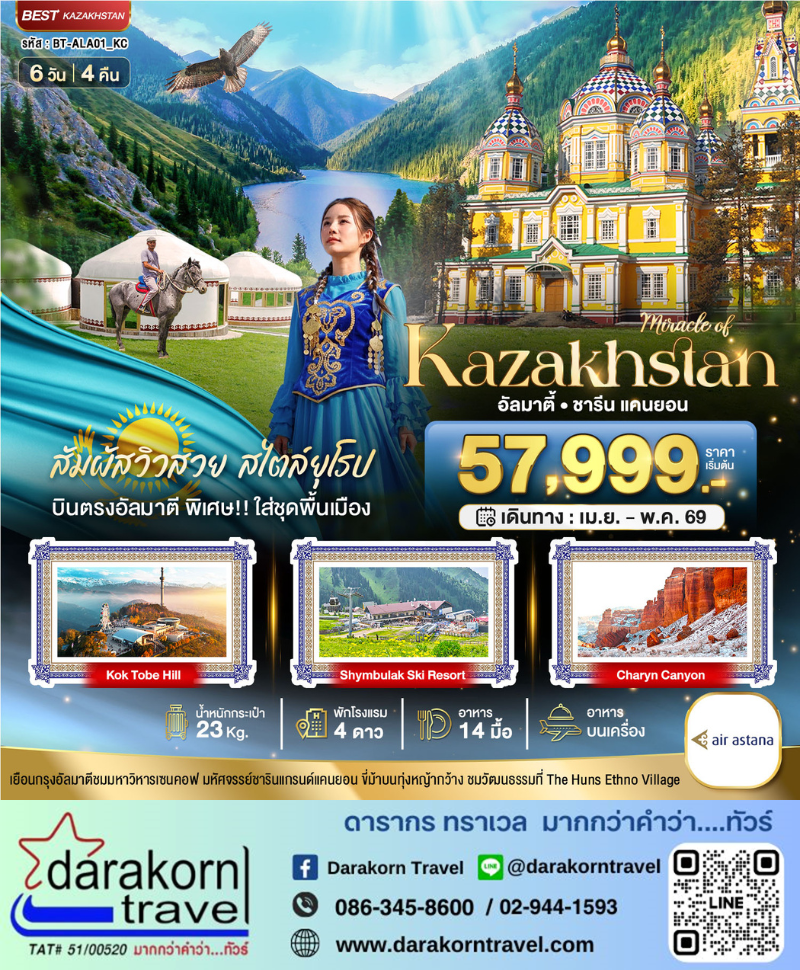 ทัวร์คาซัคสถาน - มหัศจรรย์...KAZAKHSTAN อัลมาตี ชารีน แคนยอน 6วัน4คืน(KC)เดือนเมษายน - พฤษภาคม 2569