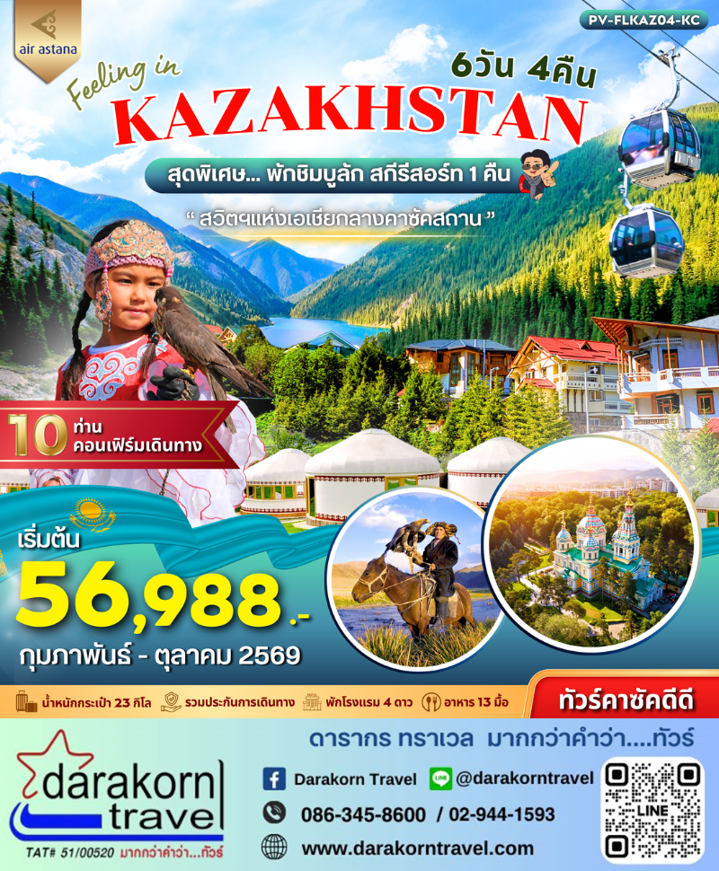 ทัวร์คาซัคสถาน - FEELING IN KAZAKHSTAN 6วัน4คืน(KC)เดือนกุมภาพันธ์ - ตุลาคม 2569