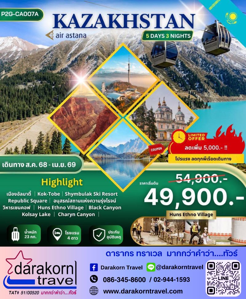 ทัวร์คาซัคสถาน - Kazakhstan คาซัคสถาน 5วัน3คืน(KC)เดือนกุมภาพันธ์ - เมษายน 2569