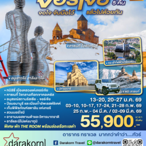 | DAY4 | ป้อมอนานูรี – อ่างเก็บน้ำซินวาลี – เมืองกูดาอูรี – กระเช้าไฟฟ้าโคบิ–กูดาอูรี– เมืองทบิลิซี่ – ทบิลิซี่มอลล์ |