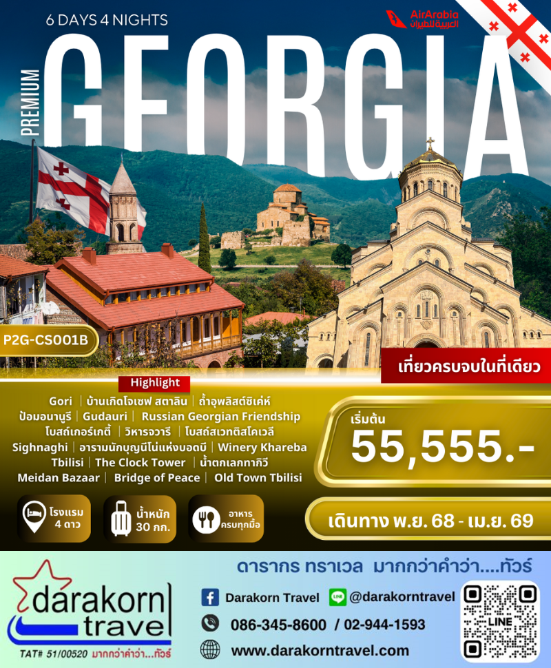 ทัวร์จอร์เจีย - GEORGIA PREMIUM เที่ยวครบ จบในที่เดียว 6วัน4คืน(G9)เดือนมีนาคม - เมษายน 2569