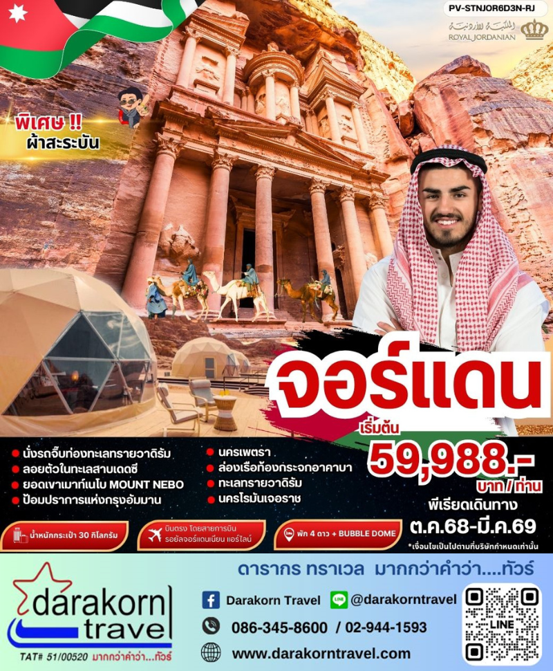 | DAY1 | กรุงเทพฯ สนามบินสุวรรณภูมิ – ออกเดินทางสู่กรุงอัมมาน ประเทศจอร์แดน |
