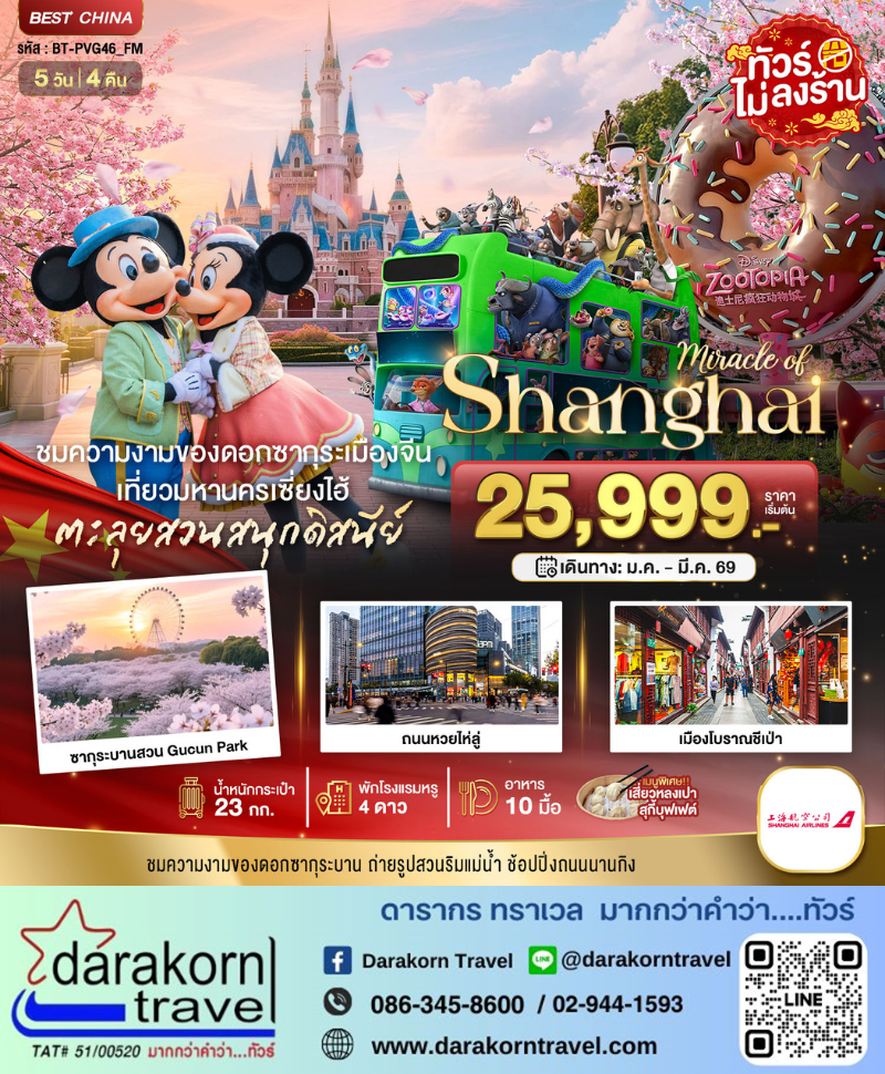| DAY3 | สวนสนุกดิสนีย์แลนด์เซี่ยงไฮ้ (เต็มวัน) |