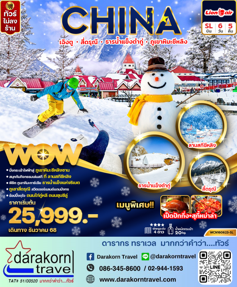 DAY2 | ภูเขาหิมะซีหลิง – ขึ้นกระเช้าชมวิวยอดเขาสุริยันจันทรา(รวมค่ากระเช้า) เล่นสกี (ไม่รวมอุปกรณ์เล่นสกี) – ตูเจียงเยี่ยน – สะพานหนานเฉียว ธารน้ำสีฟ้า (Blue Tears) |