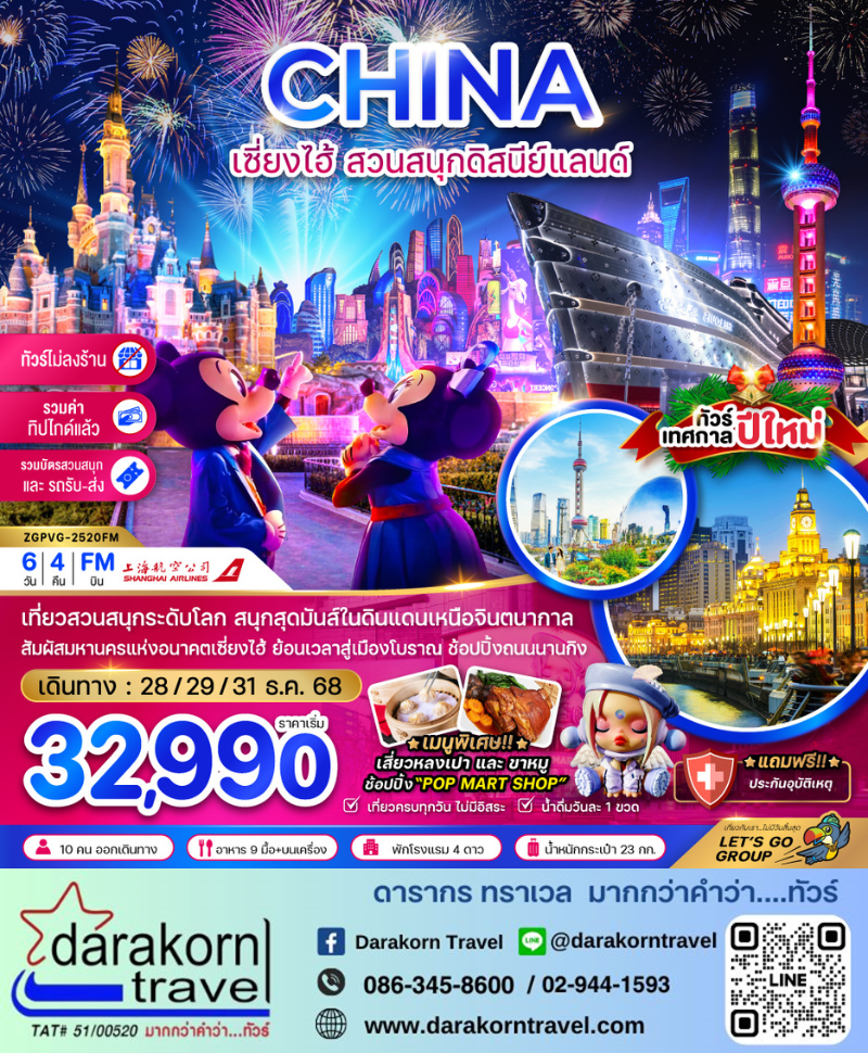 DAY2 | สวนสนุกระดับโลก ดิสนีย์แลนด์ เซี่ยงไฮ้ (รวมรถรับส่ง – รวมค่าเข้าสวนสนุกลแล้ว) |