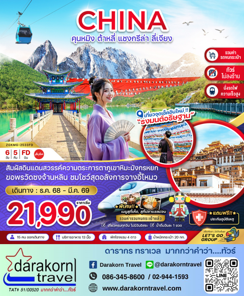 | DAY5 | ภูเขาหิมะมังกรหยก – โชว์จางอี้โหมว – ทะเลสาบไป๋สุยเหอ –นั่งรถไฟความเร็วสูง – เมืองคุนหมิง |