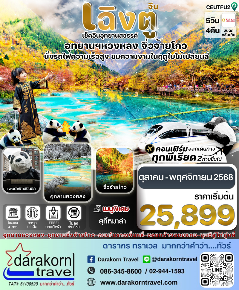 DAY3 | เที่ยวอุทยานจิ่วจ้ายโกวทั้งวัน (รถเวียนอุทยาน+อาหารบุฟเฟต์ในอุทยาน)-พักชวนจู่ซื่อ |