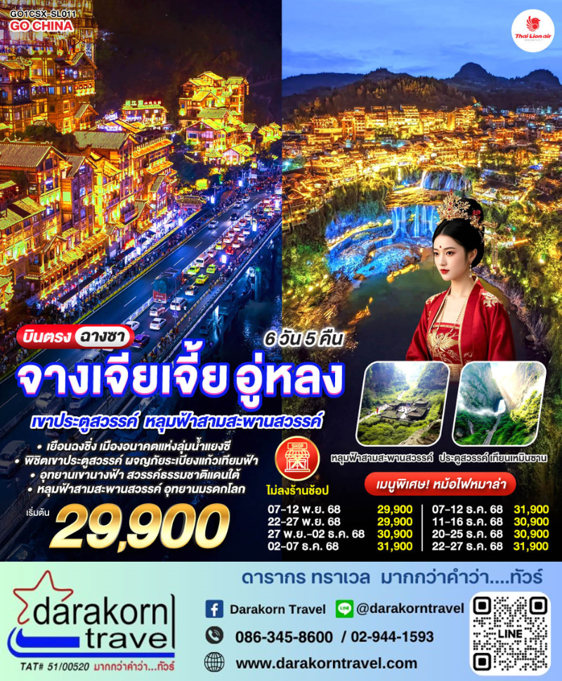 DAY6 | ฉางซา – กรุงเทพฯ (ดอนเมือง) – ฉางซา (ท่าอากาศยานนานาชาติฉางซา หวงฮัว) (SL935 : 14.35-17.15) |