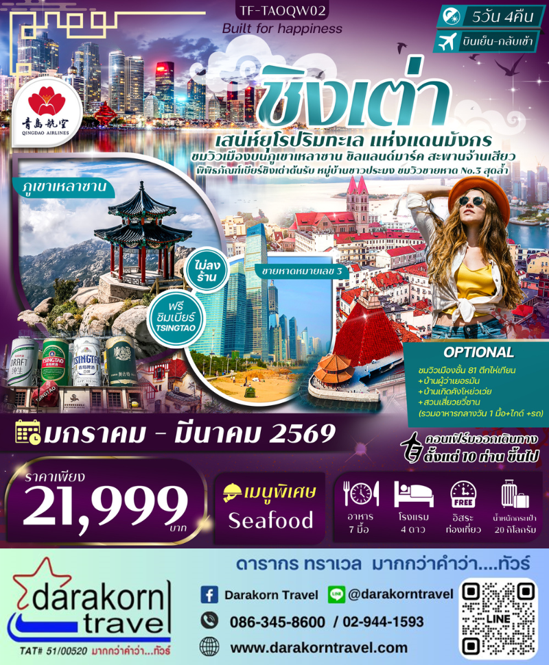 | DAY5 | สนามบินชิงเต่าเจียวตง-กรุงเทพฯ(สนามบินสุวรรณภูมิ) |
