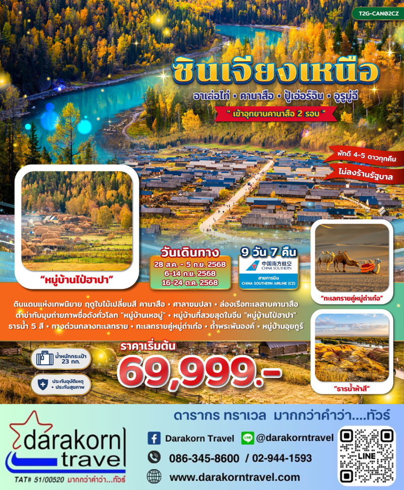 DAY2 | สนามบินสุวรรณภูมิ – สนามบินกวางโจวไป่หยุน CZ3036 (03.00-06.55) – สนามบินกวางโจวไป่หยุน สนามบินอัลไต CZ5833 (10.15-16.00) – เมืองอาเล่อไท่ |