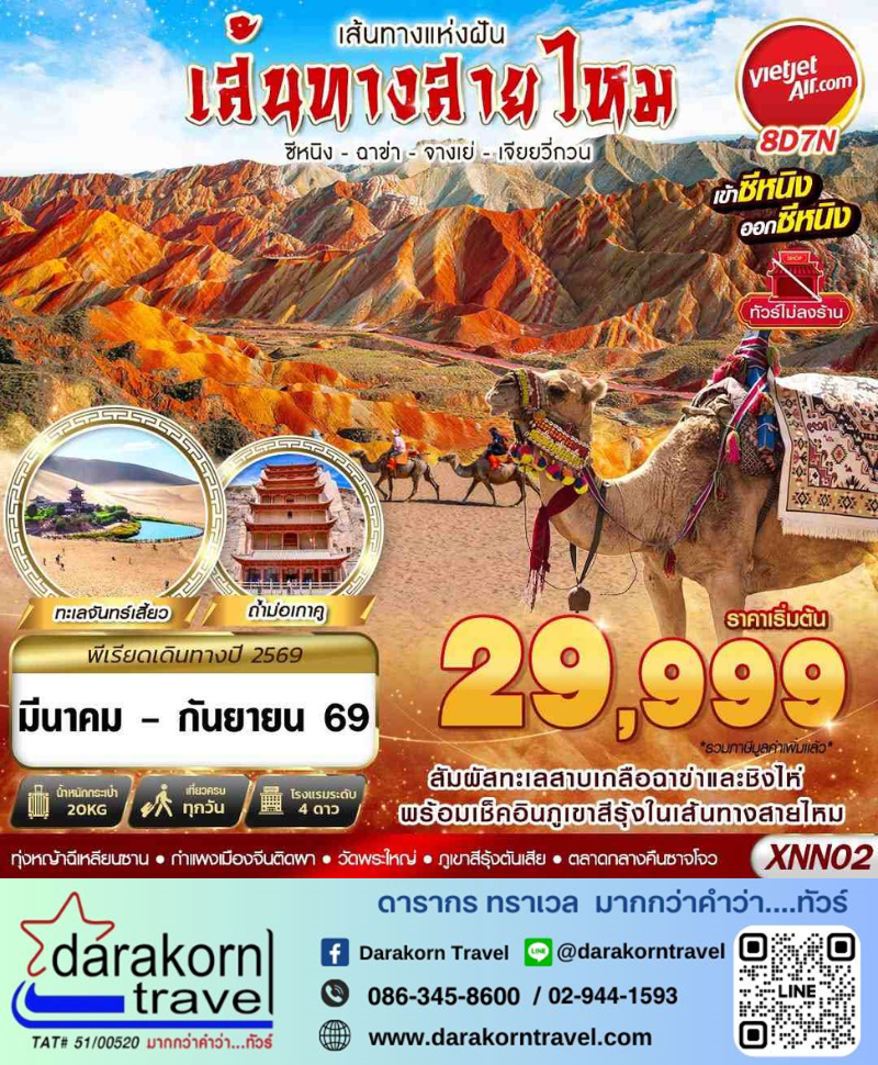 | DAY7 | ทุ่งหญ้าฉีเหลียนซาน – วัดพระใหญ่ – ซีหนิง – ถนนคนเดินเซี่ยหนานกวน าข่า – ทะเลสาบเกลือฉาข่า (รางคืนซีหนิง |