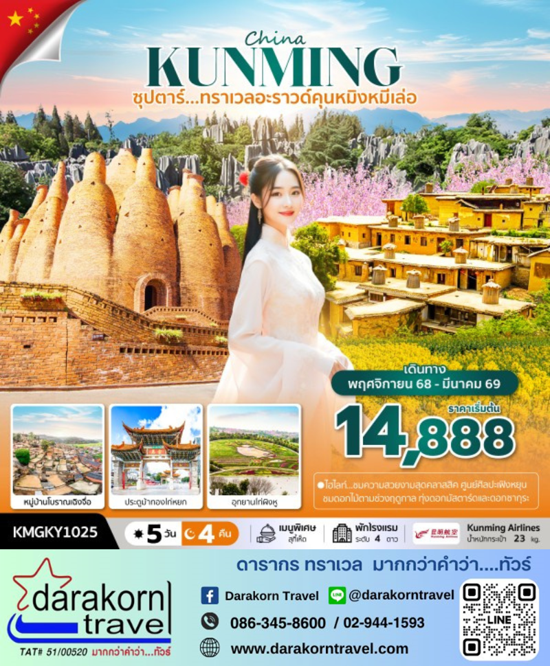 | DAY1 | ท่าอากาศยานนานาชาติสุวรรณภูมิ ประเทศไทย – ท่าอากาศยานนานาชาติคุนหมิงฉางสุ่ย |
