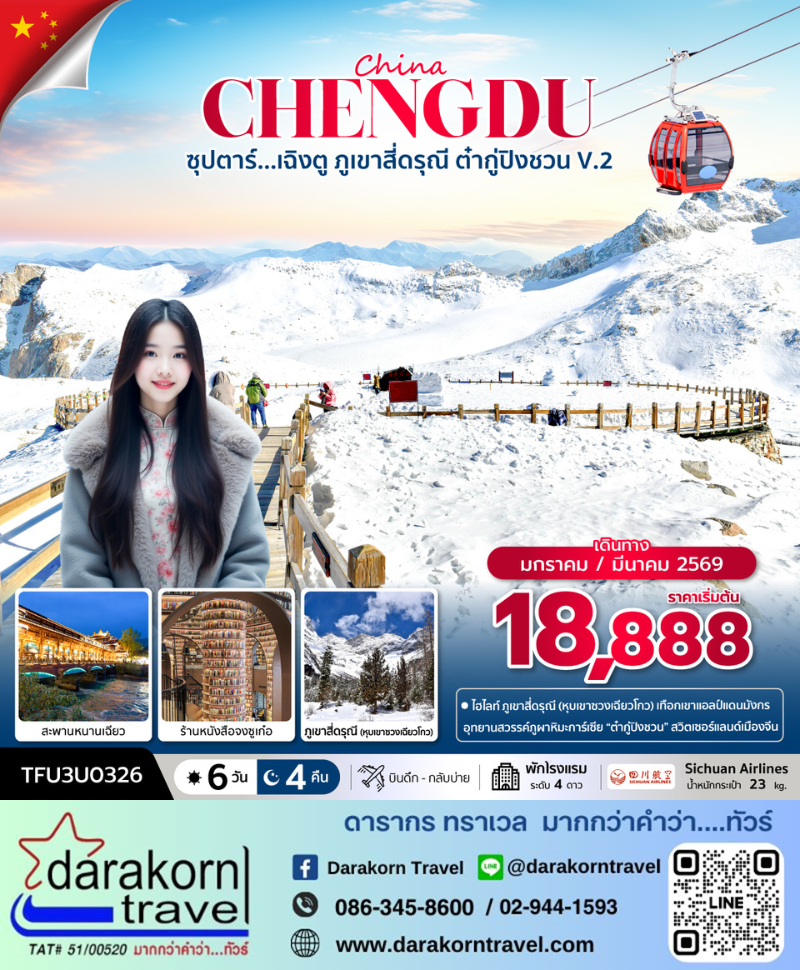 DAY5 | เมืองตูเจียงเอี้ยน – ร้านยาสมุนไพรจีน – จัตุรัสหยางเทียนวู่ – รูปปั้นหมีแพนด้านอนเซลฟี – ร้านหนังสือจงซูเก๋อ – เมืองเฉิงตู – ถนนคนเดินชุนซีลู่ – แพนด้ายักษ์ปีนตึก IFS – ร้าน POP MART – ถนนคนเดินไท่กู่หลี่ – OPTION TOUR : โชว์เปลี่ยนหน้ากากที่นั่ง VIP |