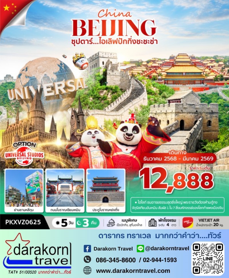 | DAY3 | อิสระท่องเที่ยวเต็มวัน หรือเลือกซื้อ OPTION เสริม OPTION A: UNIVERSAL BEIJING RESORT / OPTION B: CITY TOUR |