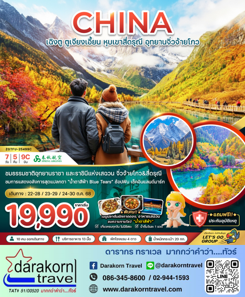 DAY3 | ตเมืองจิ่วจ้ายโกว – อุทยานแห่งชาติจิ่วจ้ายโกว – ทะเลสาบแรด – น้ำตกธารไข่มุก – ทะเลสาบนกยูง – ทะเลสาบแพนด้า – เมืองวินชวน |