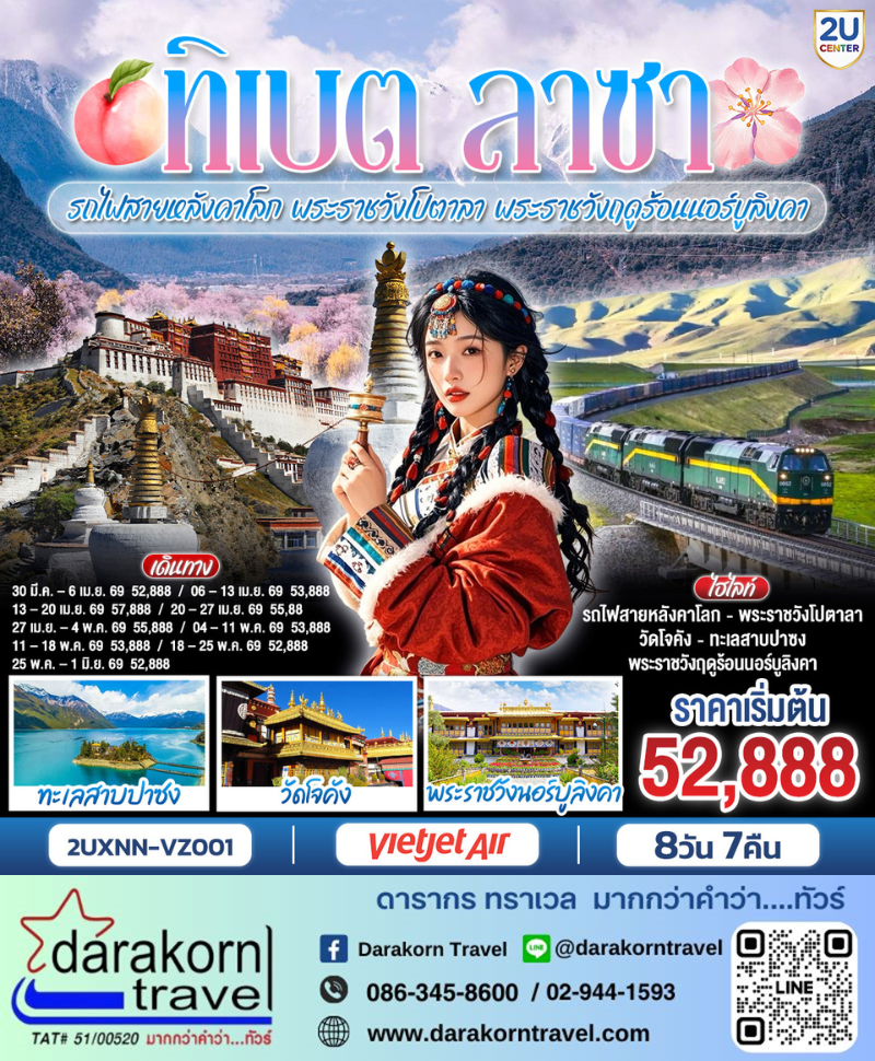 | DAY2 | ซีหนิง (สนามบินเฉาเจียเป่า) – ลาซา (สนามบินลาซากงกา) ( บินภายใน) |