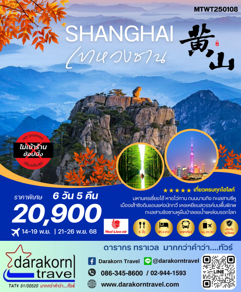DAY5 | เมืองถุนซี – นั่งกระเช้าขึ้นภูเขาหวงซาน-เที่ยวชมอุทยานเขาหวงซาน- ย่านถนนโบราณถุนซี -ไกด์นำเสนอ OP บัตรชมการแสดง เสน่ห์เมืองอันหุย |