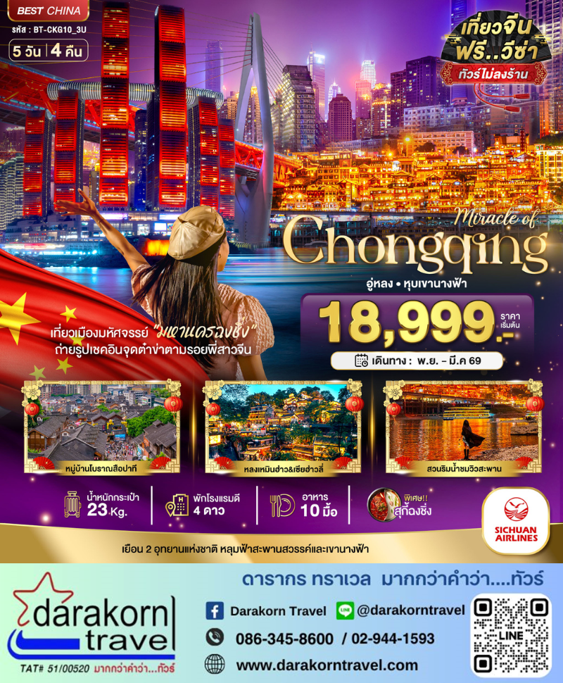 DAY1 | สนามบินสุวรรณภูมิ•สนามบินฉงชิ่งเจียงเป่ย์•เมืองฉงชิ่ง |