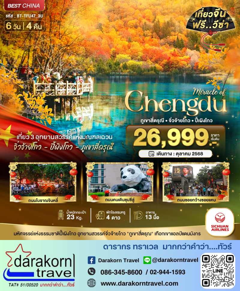 DAY5 | จัตุรัสหย่างเทียนวู่•หมีแพนด้าเซลฟี่ •ศูนย์อนุรักษ์หมีแพนด้า •เมืองเฉิงตู •ถนนซอยกว้างซอยแคบ |