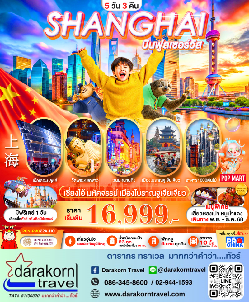 | DAY2 | ท่าอากาศยานนานาชาติซ่างไห่ผู่ตง-เซี่ยงไฮ้-เมืองโบราณจูเจียเจียว (ไม่รวมล่องเรือ)-ร้านบัวหิมะ-ถนนอู่คัง-ตลาดร้อยปีเฉินหวังเมี่ยว |