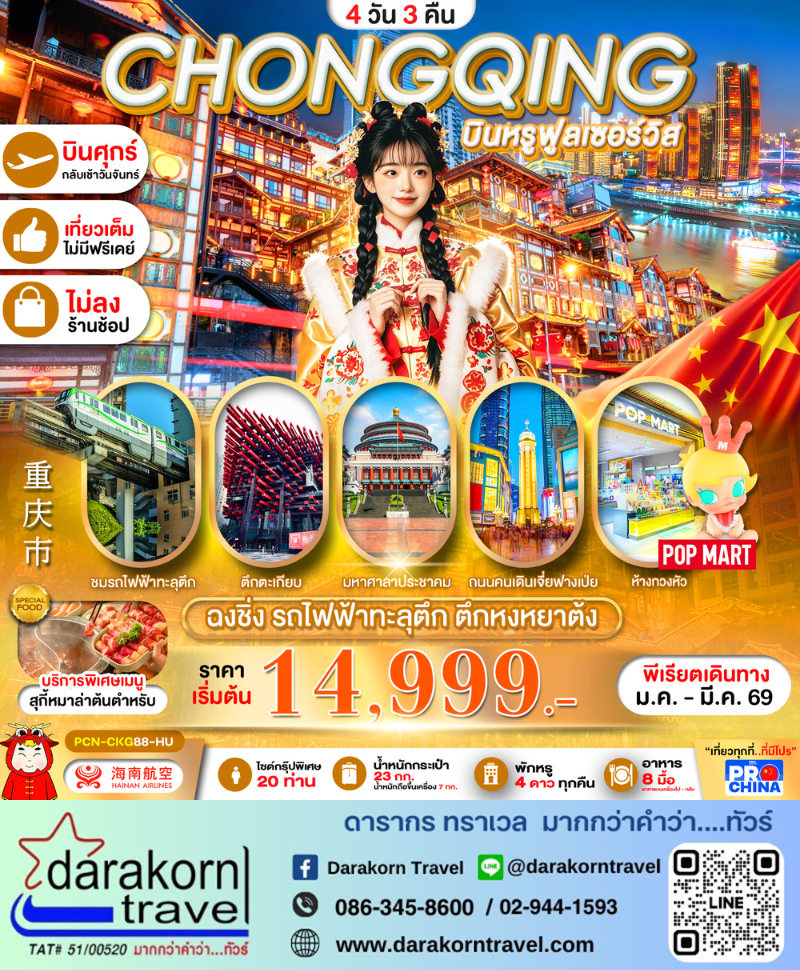 | DAY4 | นครฉงชิ่ง – สนามบินฉงชิ่ง – สนามบินสุวรรณภูมิ |