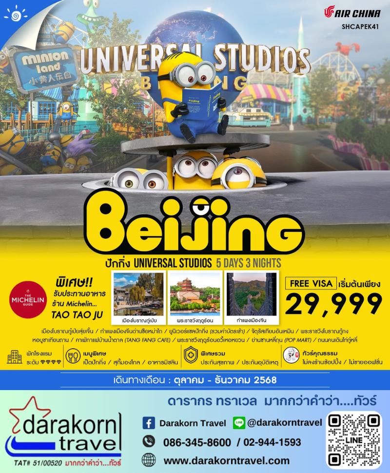 ทัวร์จีน - ยูนิเวอร์แซลปักกิ่ง กำแพงเมืองจีน 5วัน3คืน(CA)เดือนตุลาคม - ธันวาคม 2568
