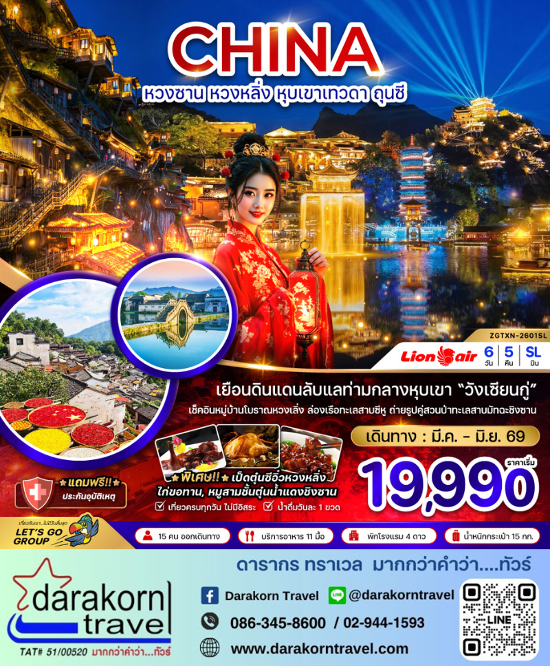 ทัวร์จีน - หวงซาน หวงหลิ่ง หุบเขาเทวดา ถุนซี 6วัน5คืน(SL)เดือนมีนาคม - มิถุนายน 2569