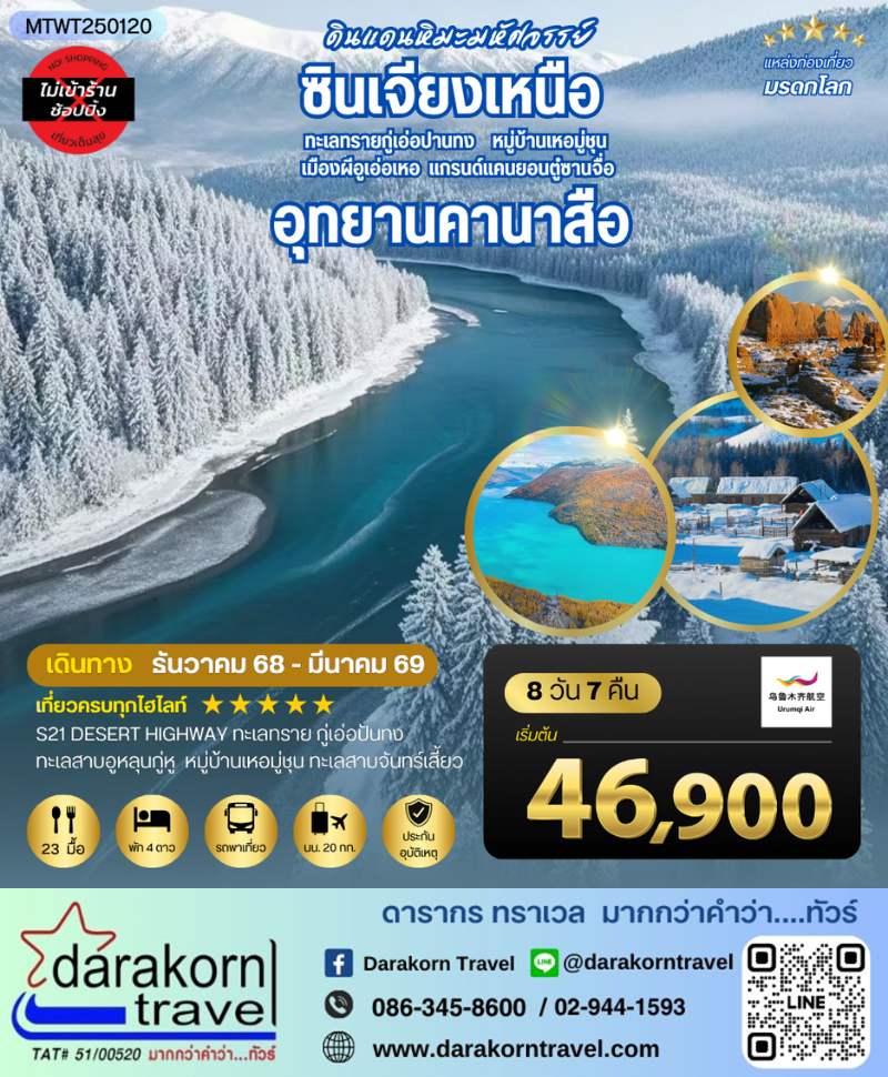 ทัวร์จีน - อุทยานคานาสือ-แกรนด์แคนยอนตู๋ซานจื่อ เมืองอูรุมุฉี 8วัน7คืน(UQ)เดือนธันวาคม 2568 - มีนาคม 2569