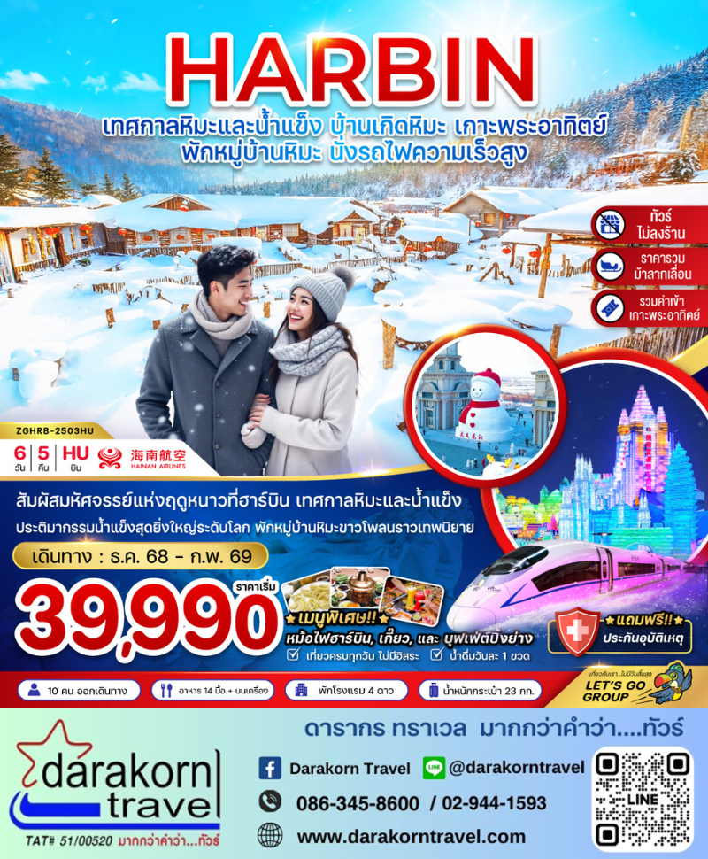 | DAY4 | ถนนหมู่บ้านหิมะ – อนุสาวรีย์หมู่บ้านหิมะ – ไปรษณีย์หมู่บ้านหิมะ – เมืองฮาร์บิน – เทศกาลแกะสลักน้ำแข็ง |