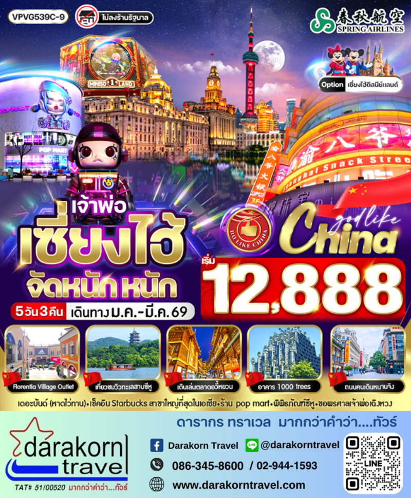 | DAY5 | ตลาดร้อยปีเฉิงหวังเมี่ยว – ศาลเจ้าพ่อเฉิงหวง – Tian an 1000 Tree – Florentia Village Outlet – อิสระย่านหวู่เจี่ยวช่าง – สนามบินนานาชาติเซี่ยงไฮ้ผู่ตง – สนามบินนานาชาติเซี่ยงไฮ้ผู่ตง – สนามบินสุวรรณภูมิ |