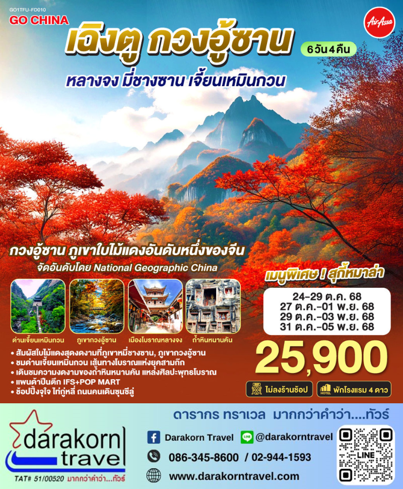 DAY3 | ถ้ำหินแกะสลักหนานคัน – ภูเขากวงอู้ซาน (รวมกระเช้า) |